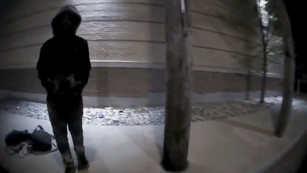 Video of the incident was recorded by an officer’s body-worn camera. Responding to the call, the officers were able to quickly locate the suspect.