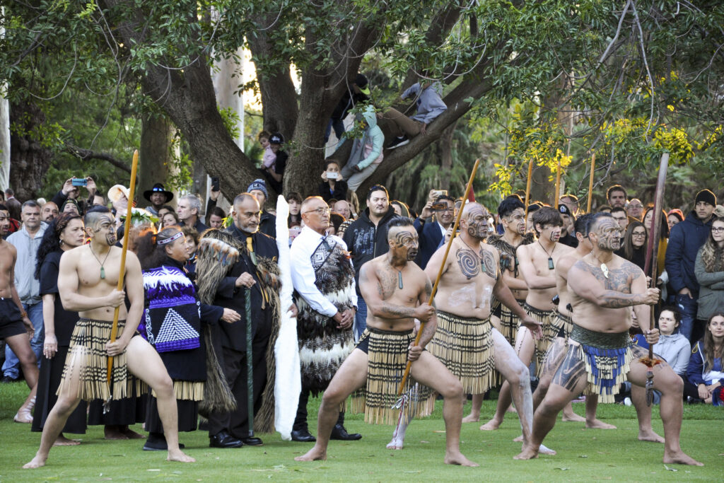 Maori dancers perform during an Anzac Day service at Kings Park in Perth, April 25, 2019. (Angie Raphael/AAP Image)