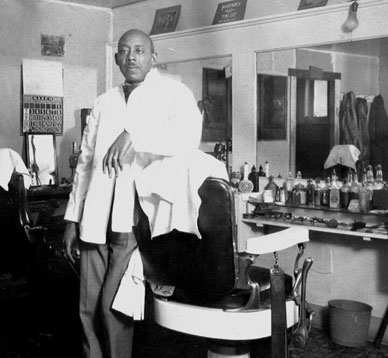 Barbershops were also the communication center, the local watering hole, the place you learned what was really happening in a community as noted by historian Thomas C. Holt, whose father was a barber: “I learned more about… history, human relations, and current events in the barbershop than… anywhere else… incredible debates about one thing or another, sometimes frivolous, sometimes very important stuff, a place where all kinds of characters pass through from the… stuck up… high school principal or doctor to… the character on the street… talking a mile a minute and my father out talking everybody… and I suspect I learned a lot.”[11] High school principal Malcolm Hemphill, Jr. had a similar experience: “My grandfather, was a barber, Steve Dickey… always worked in a shirt and tie… He had a barbershop [in Chicago, Illinois]… and I learned so much from him as a kid… when I worked in the barbershop shining shoes… historically, they gave me such a perspective of life in the Black community, the kinds of things that they were doing, the kinds of things that they experienced… it was a learning experience for us. It was just phenomenal.”[12]